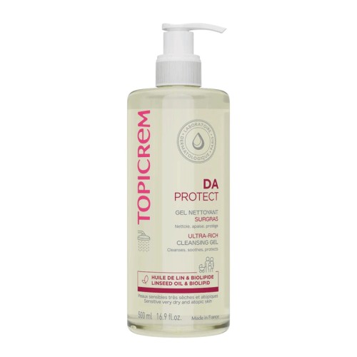Enrichi en ingrédients relipidants, DA PROTECT Gel Nettoyant Surgras nettoie tout en douceur et apaise les peaux sensibles, très sèches et atopiques de toute la famille. Ce gel nettoyant surgras pour peaux atopiques apaise les démangeaisons et les irritations. Il hydrate la peau et protège la barrière cutanée dès la douche. Sa texture surgrasse à la mousse délicate laisse la peau douce et confortable. Ne pique pas les yeux.