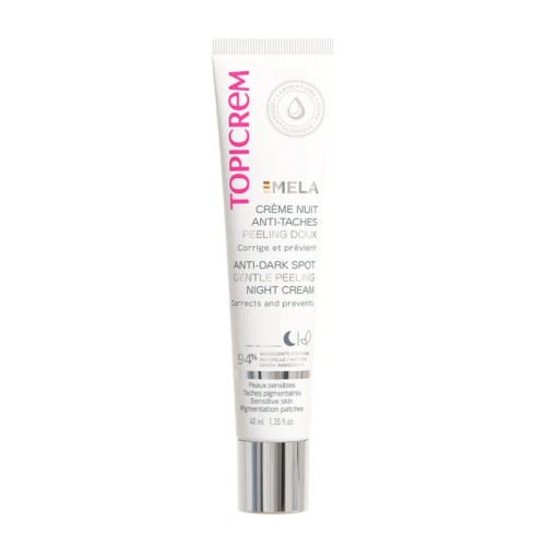 MELA Crème Nuit Anti-Taches Peeling Doux corrige les taches nuit après nuit pour un teint plus lumineux chaque matin. Grâce à l’association entre le Brevet Complexe MELA* et un peeling doux (chimique et enzymatique), la Crème Nuit Anti-Taches Peeling Doux offre une double action. Elle lisse et corrige tous les types de taches, mêmes plus installées. Votre crème nuit anti-taches hydrate la peau pour un teint plus éclatant dès le réveil.
